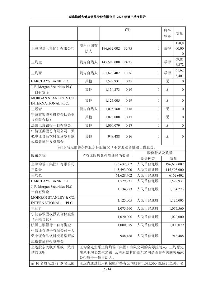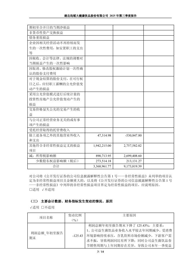 605388-均瑶健康:湖北均瑶大健康饮品股份有限公司2025年第三季度报告.pdf