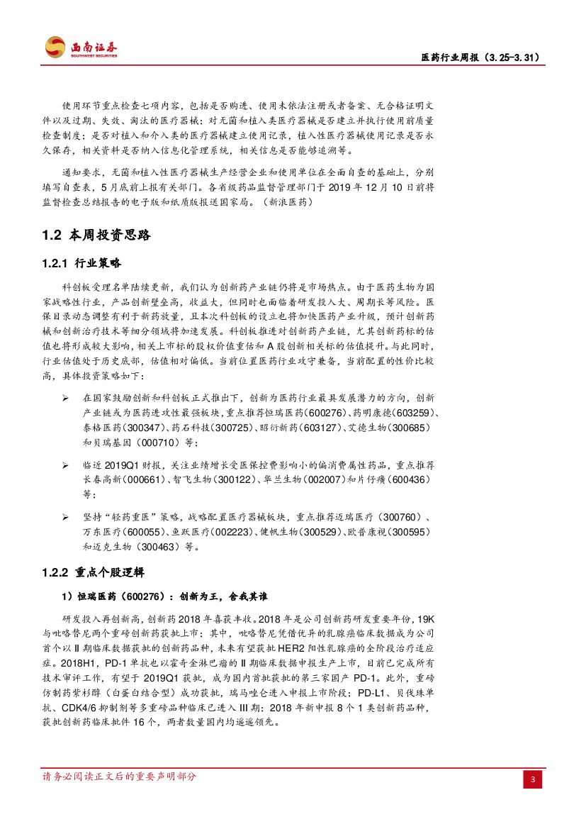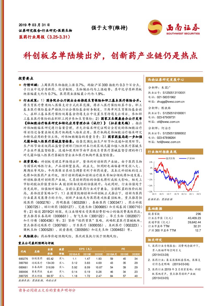 西南证券:医药行业周报:科创板名单陆续出炉,创新药产业链仍是热点.pdf