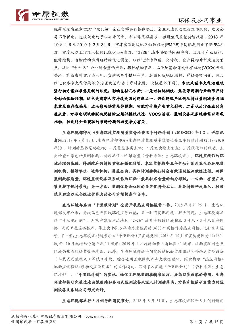 中原证券:环保及公用事业行业月报:中报业绩增速下滑显著,关注监测和固废细分景气领域.pdf