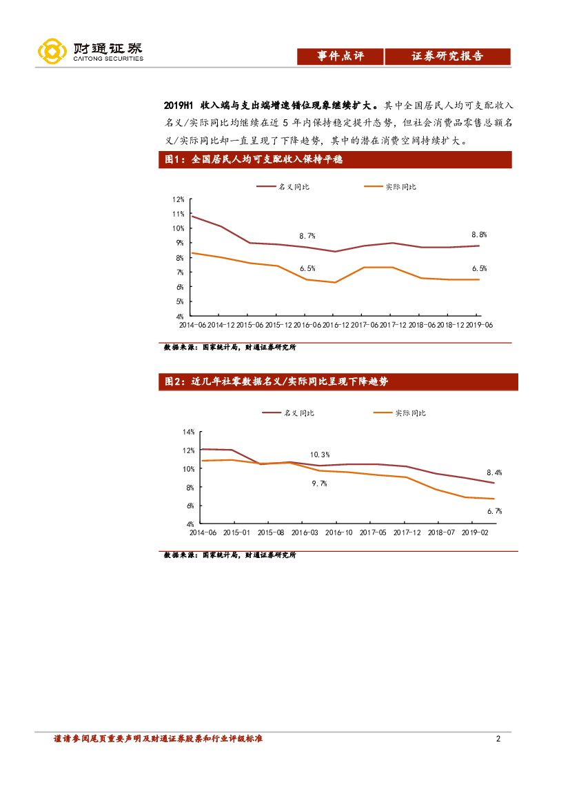 财通证券:2019H1消费数据点评:收入支出趋势背离,潜在消费空间扩大.pdf