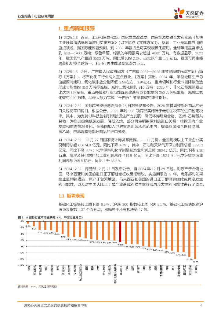 天风证券:基础化工行业工信部等三部门:加快清洁低碳氢替代应用,丙烯酸、乙二醇价格上涨.pdf
