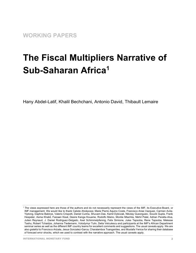 国际货币基金组织:撒哈拉以南非洲的财政乘数叙述(英文版).pdf