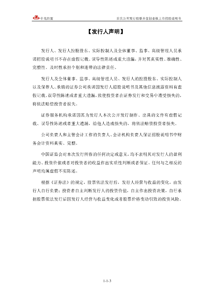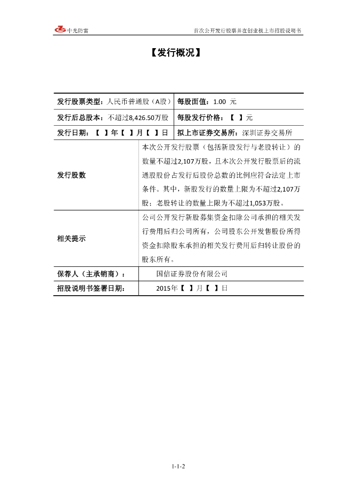 四川中光防雷科技股份有限公司深交所创业板IPO上市招股说明书.pdf