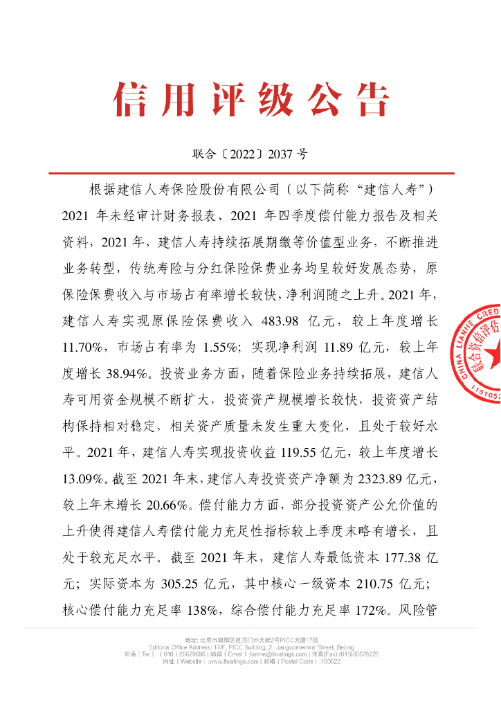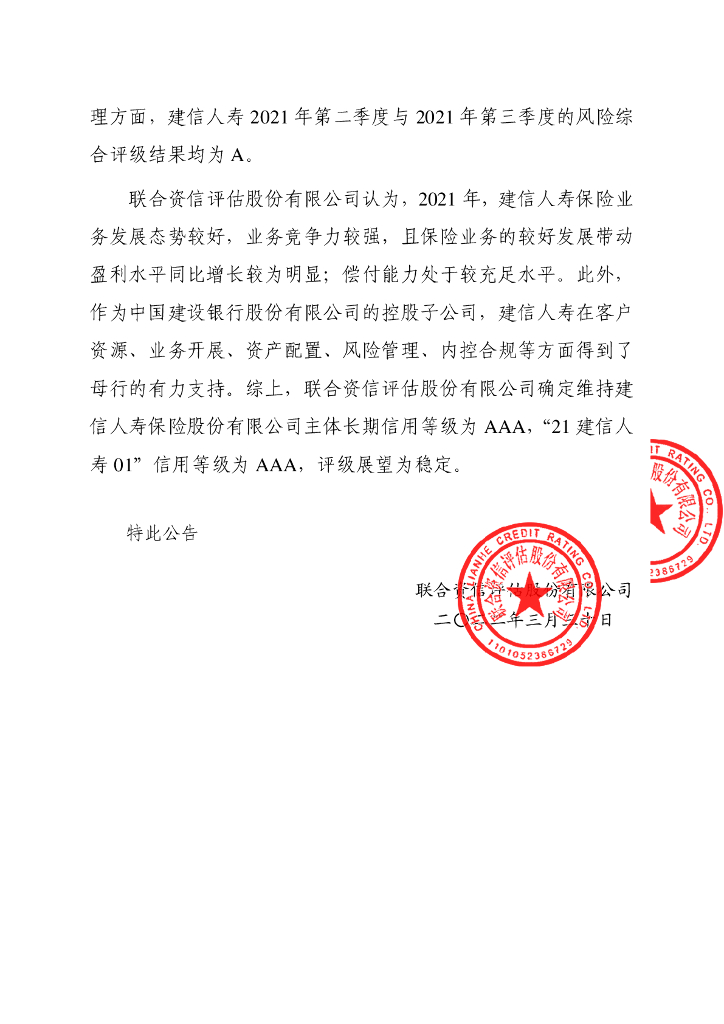 联合资信:建信人寿保险股份有限公司季度跟踪评级公告.pdf