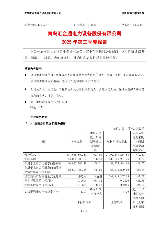 603577-汇金通:汇金通2025年第三季度报告.pdf