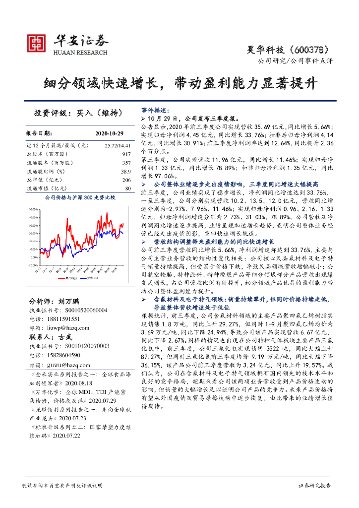 华安证券:昊华科技(600378)-细分领域快速增长,带动盈利能力显著提升.pdf