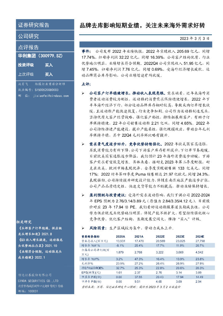 信达证券:华利集团(300979)-品牌去库影响短期业绩,关注未来海外需求好转.pdf