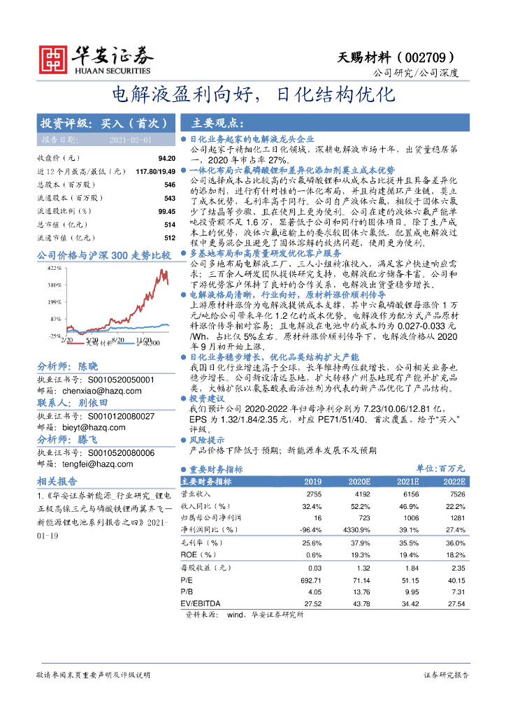 华安证券:天赐材料(002709)-电解液盈利向好,日化结构优化.pdf