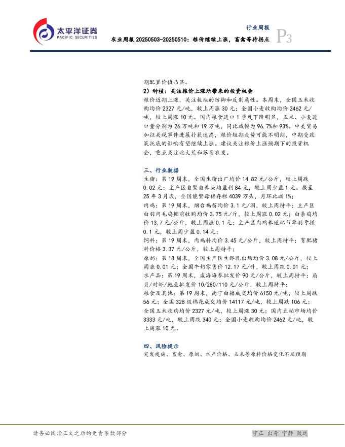 太平洋证券:农业行业周报:粮价继续上涨,畜禽等待拐点.pdf