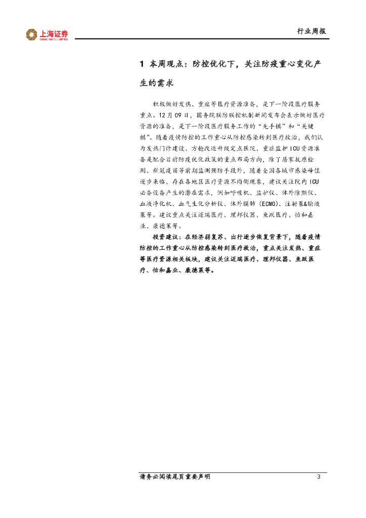 上海证券:医药生物行业周报:防控优化下,关注防疫重心变化产生的需求.pdf