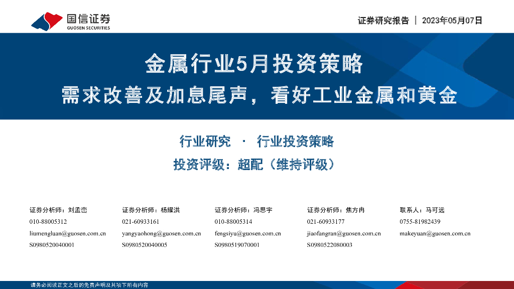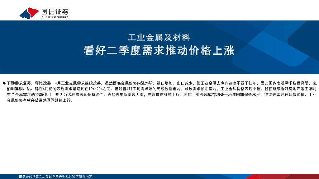 国信证券:金属行业5月投资策略:需求改善及加息尾声,看好工业金属和黄金.pdf