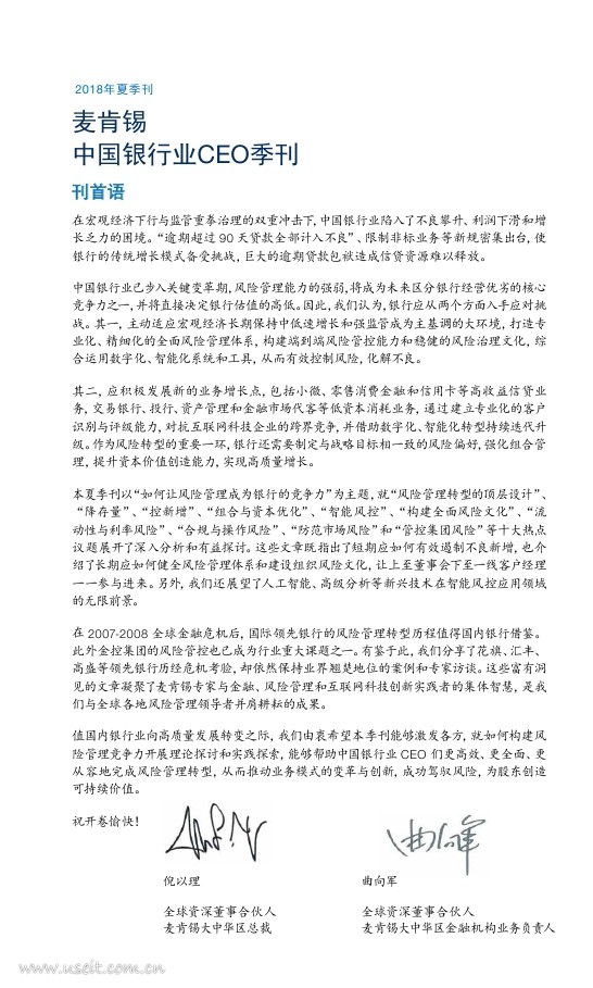 麦肯锡:中国银行业CEO季刊(2018年夏季刊)刊如何让风险管理成为银行的竞争力.pdf