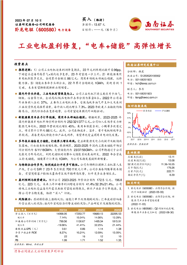 西南证券:卧龙电驱(600580)-工业电机盈利修复,“电车+储能”高弹性增长.pdf