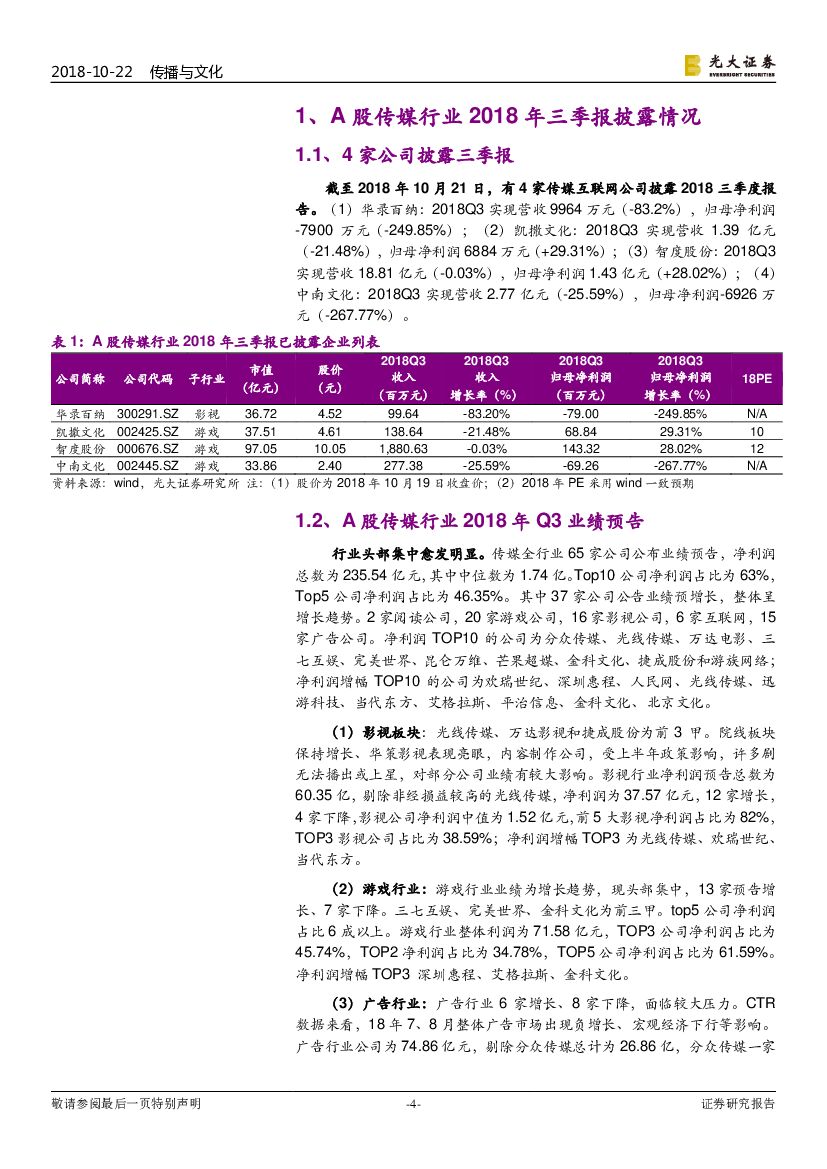 光大证券:传媒互联网行业周报:四家公司三季报出炉 头部集中 剩者为王.pdf