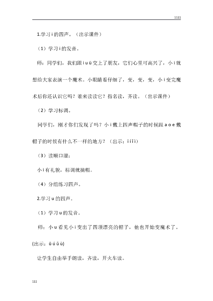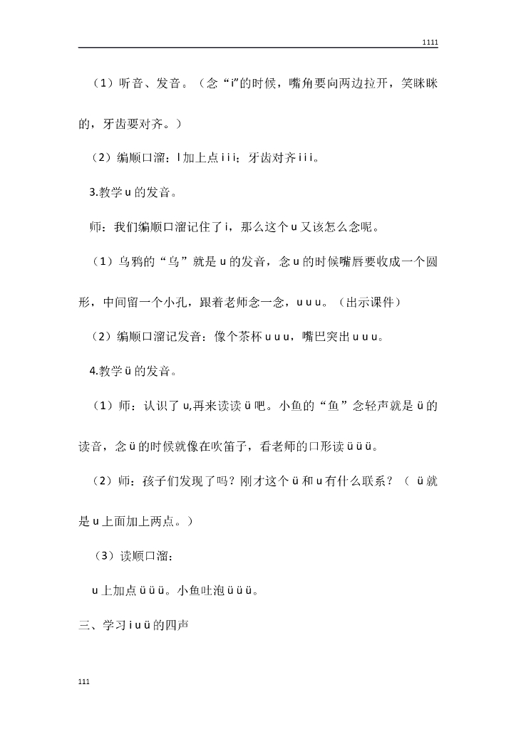一年级语文(教案1)2 i u ü y w教学设计.doc