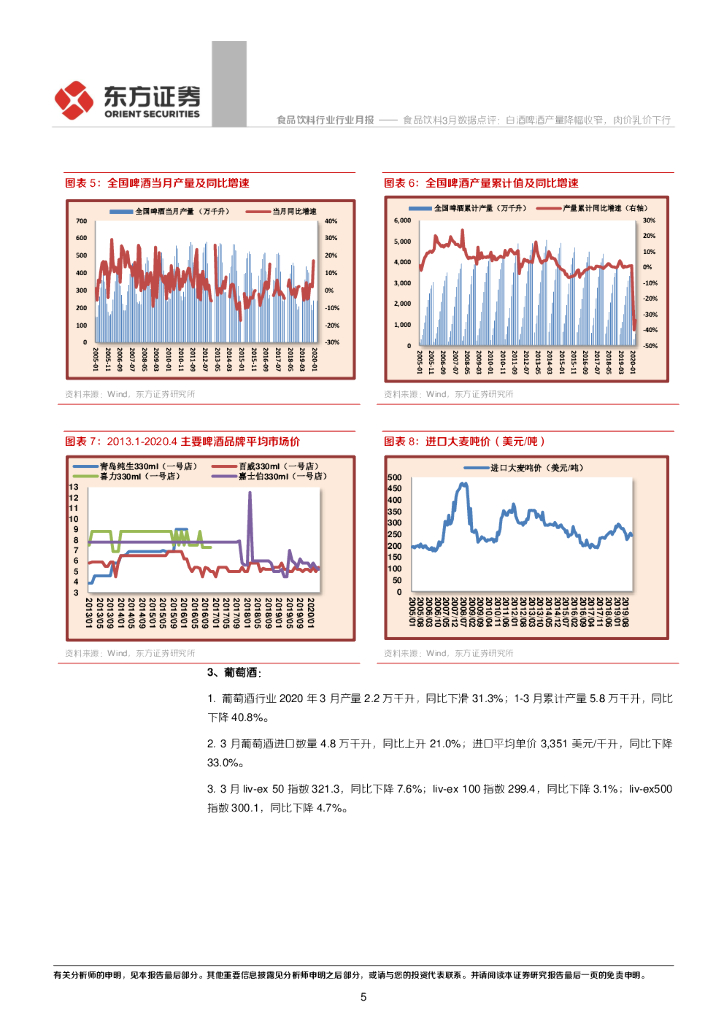 东方证券:食品饮料行业3月数据点评:白酒啤酒产量降幅收窄,肉价乳价下行.pdf
