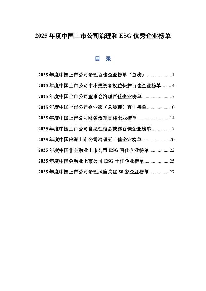 中国公司治理50人论坛:2025年度中国上市公司治理和ESG优秀企业榜单.pdf
