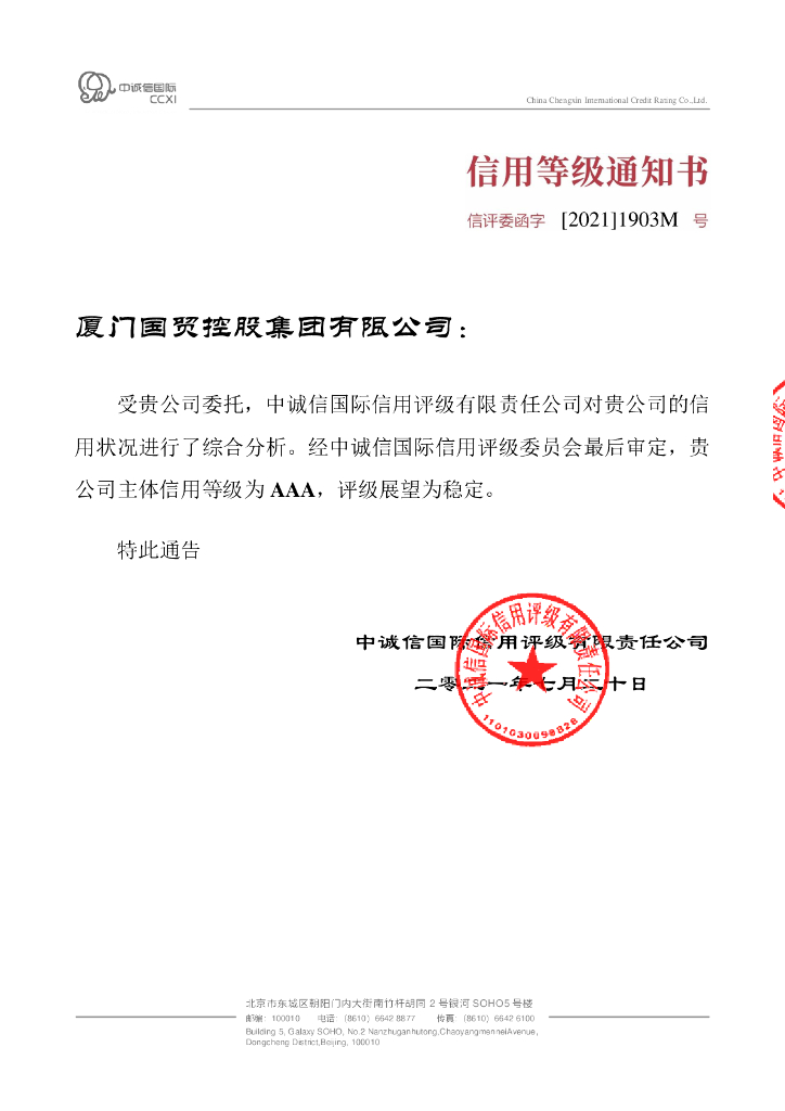 中诚信:厦门国贸控股集团有限公司主体信用评级报告及跟踪评级安排.pdf