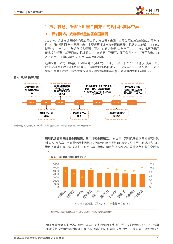 天风证券:深圳机场(000089)-航空主业盈利修复,非航板块高速成长.pdf