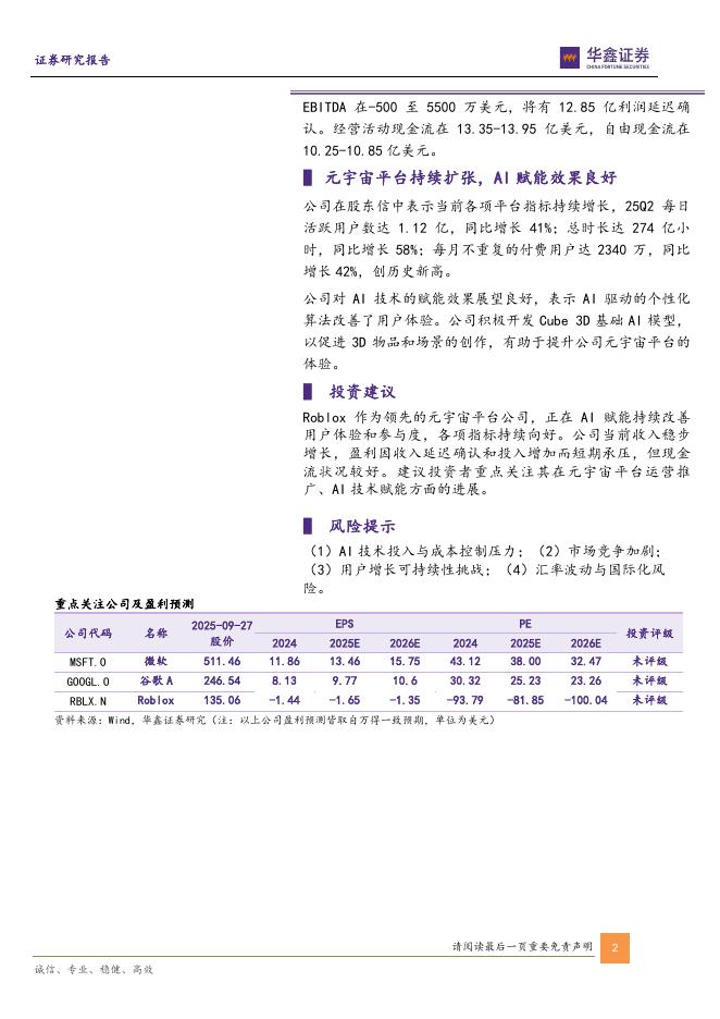 华鑫证券:计算机行业点评报告:Roblox:元宇宙平台持续扩张,AI赋能效果良好.pdf