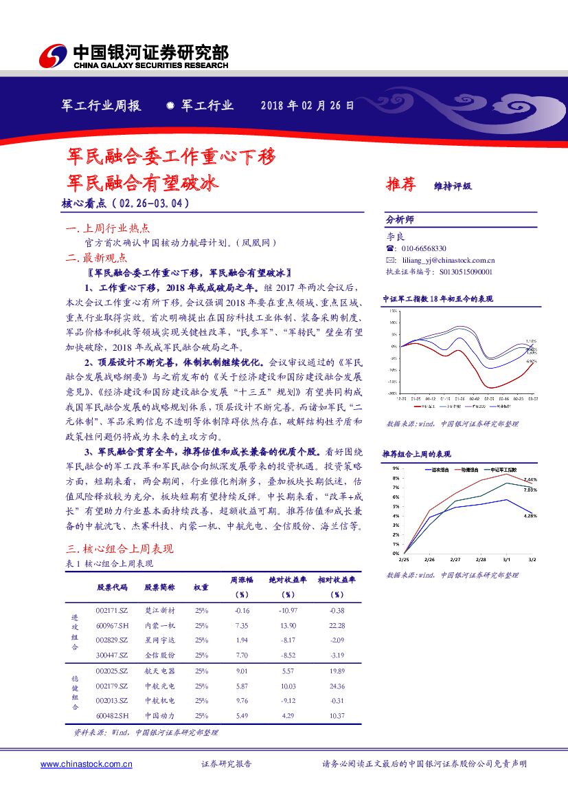 中国银河:军工行业周报:军民融合委工作重心下移 军民融合有望破冰.pdf