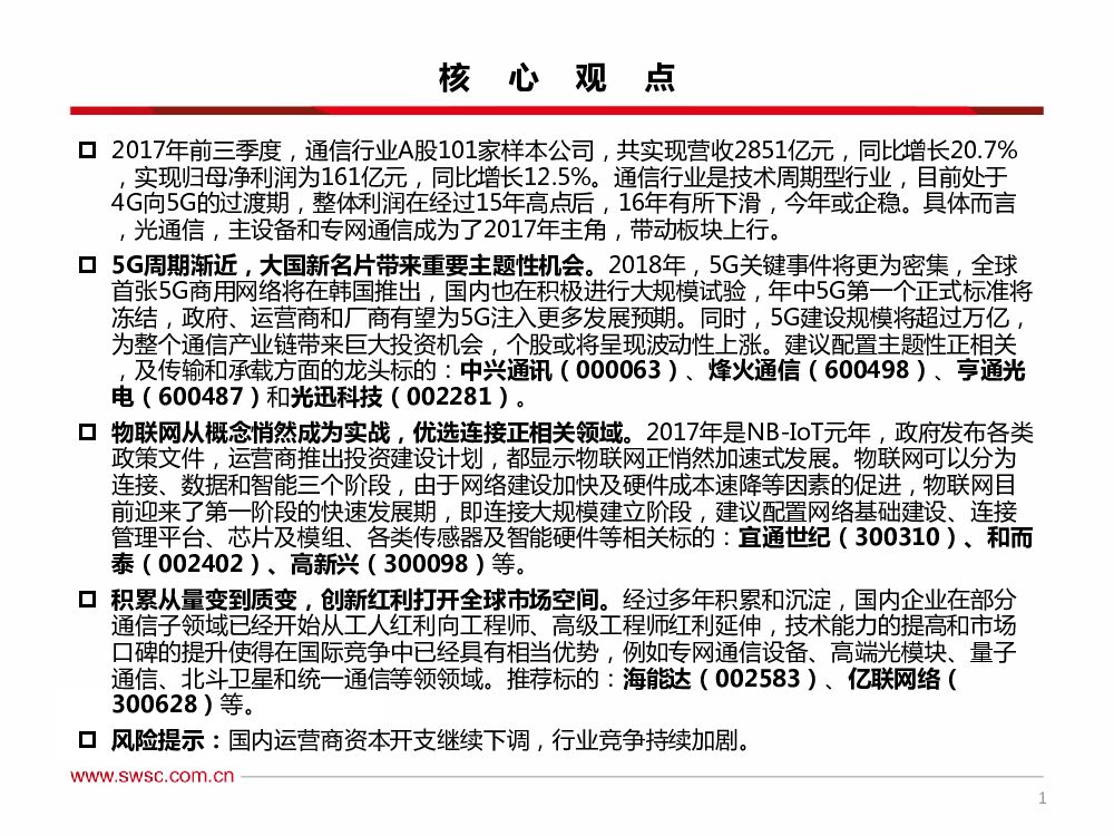 西南证券:通信行业2018年投资策略:5G之花伴物联,厚积薄发待成蝶.pdf