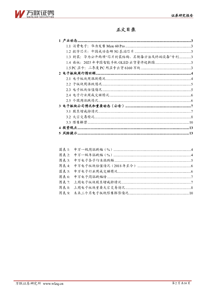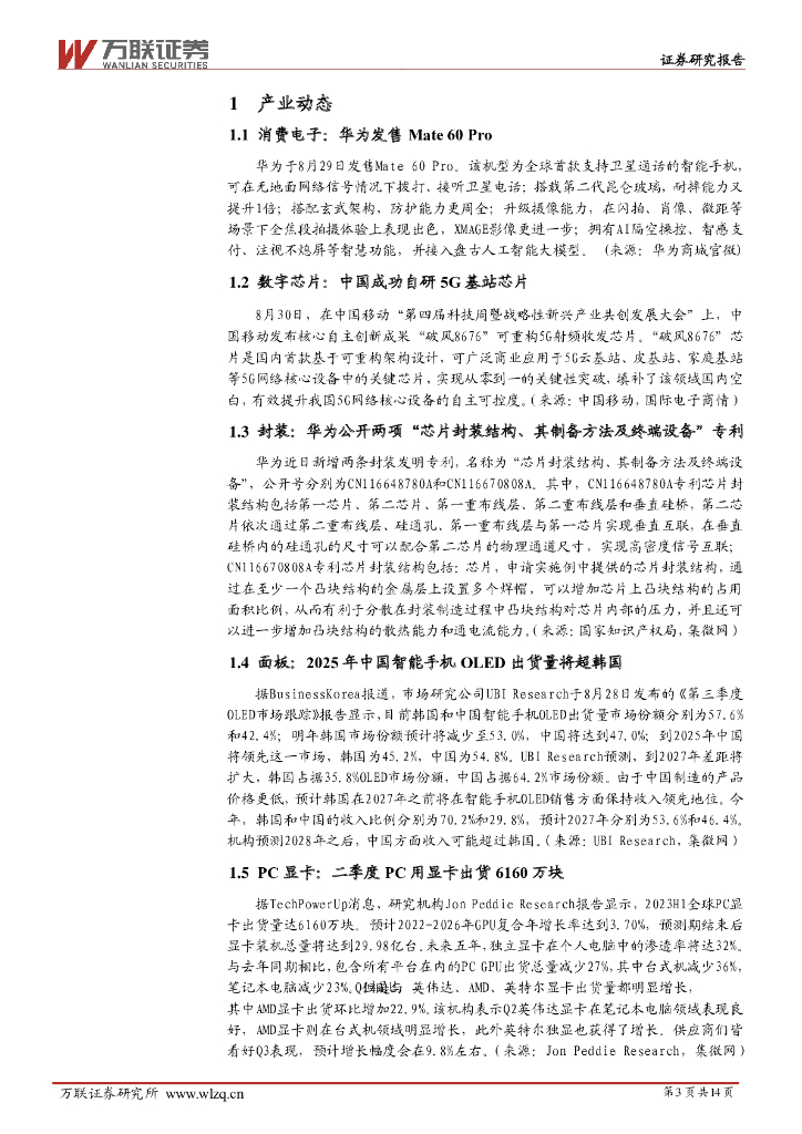 万联证券:电子行业周观点:华为发售Mate 60 Pro,关注华为产业链投资机遇.pdf