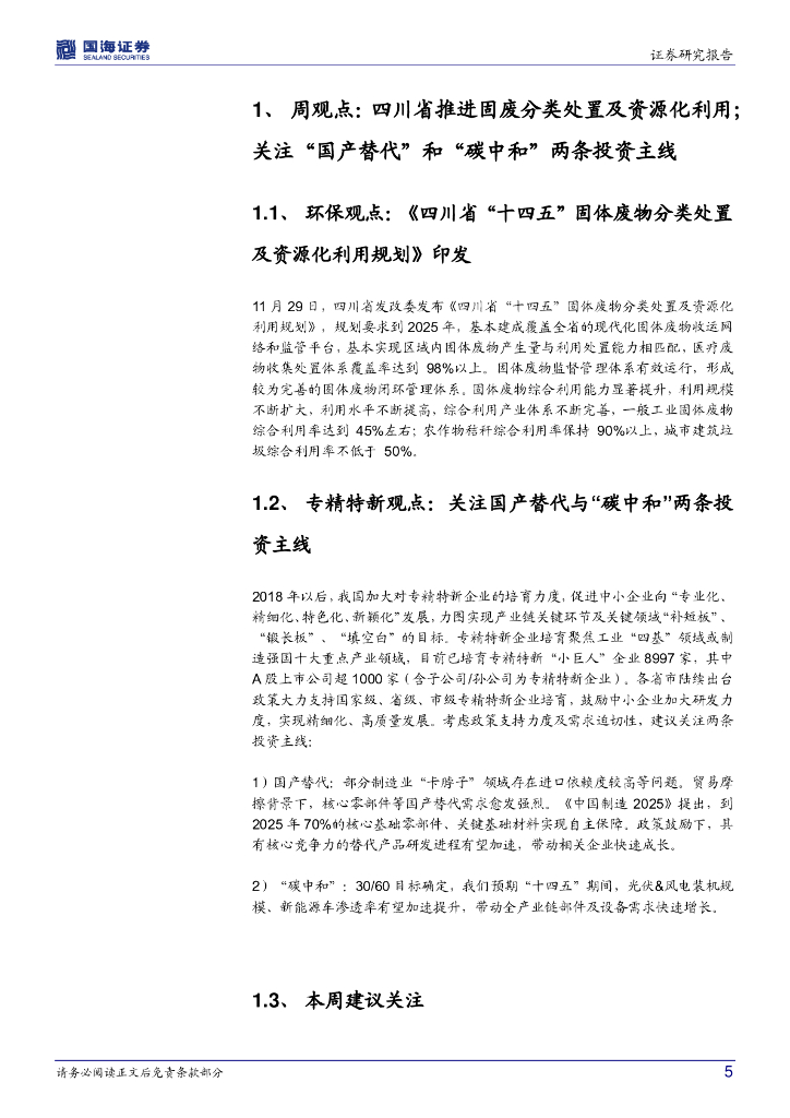 国海证券:环保&专精特新周报:四川省推进固废分类处置及资源化利用.pdf