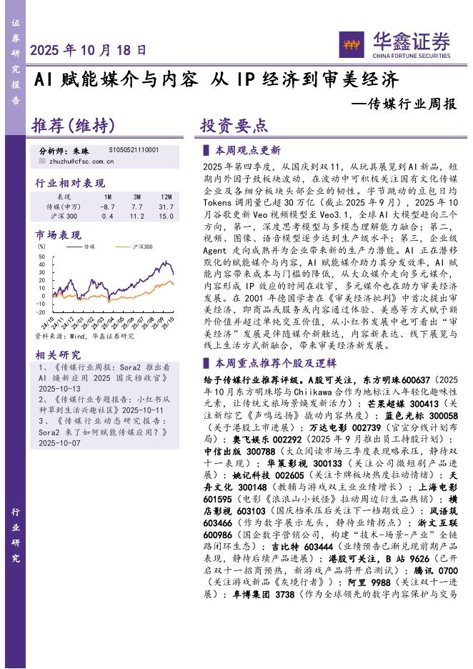 华鑫证券:传媒行业周报:AI赋能媒介与内容从IP经济到审美经济.pdf