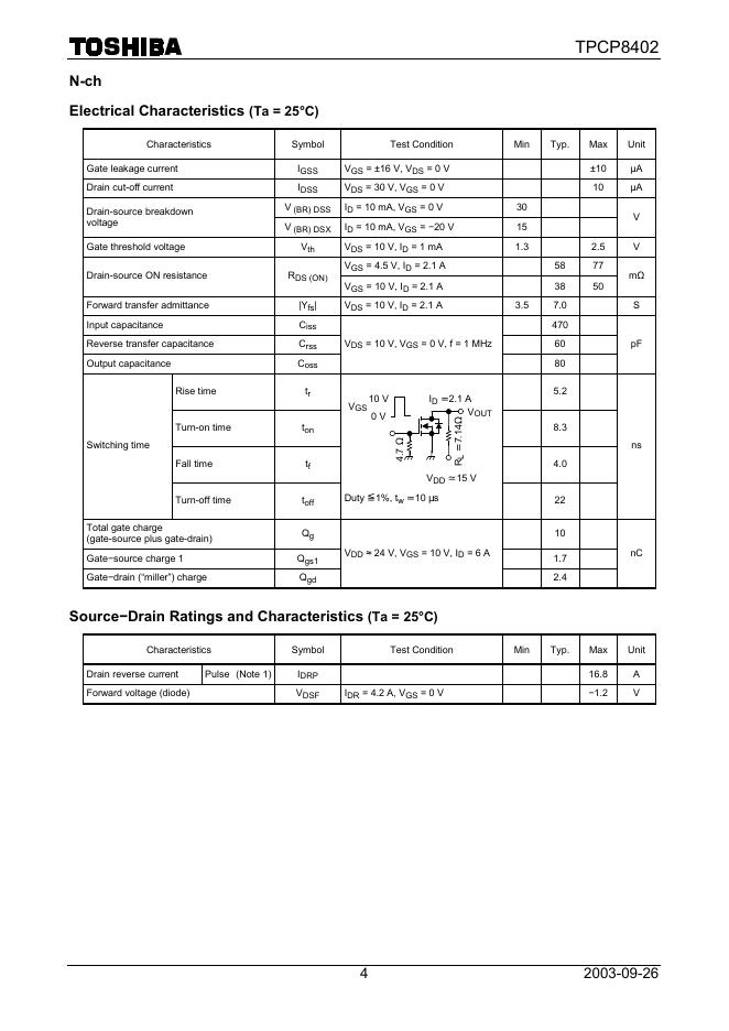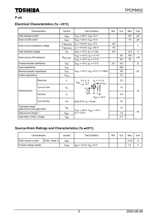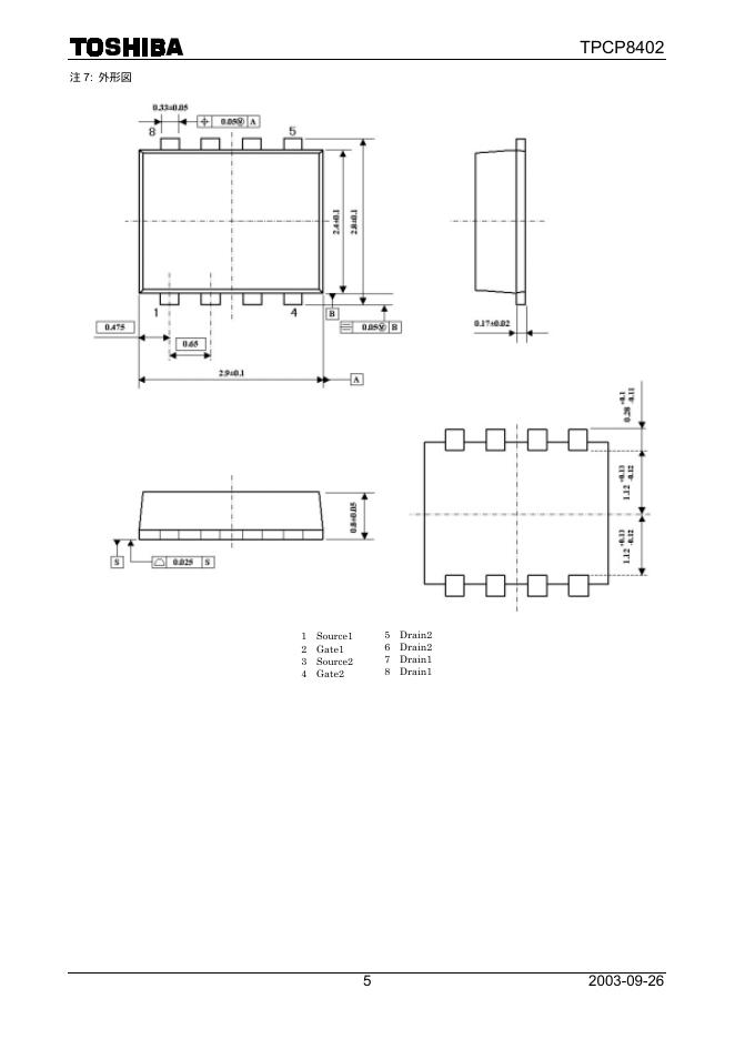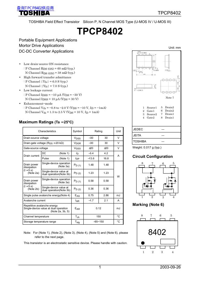 TOSHIBA Field Effect Transistor Silicon P, N Channel MOS Type (U-MOS IV / U-MOS III) TPCP8402 数据手册.pdf