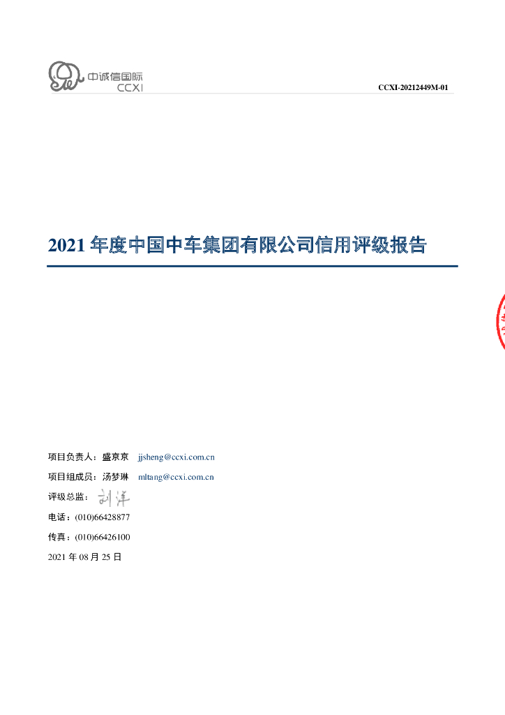 中诚信:中国中车集团有限公司信用评级报告及跟踪评级安排.pdf