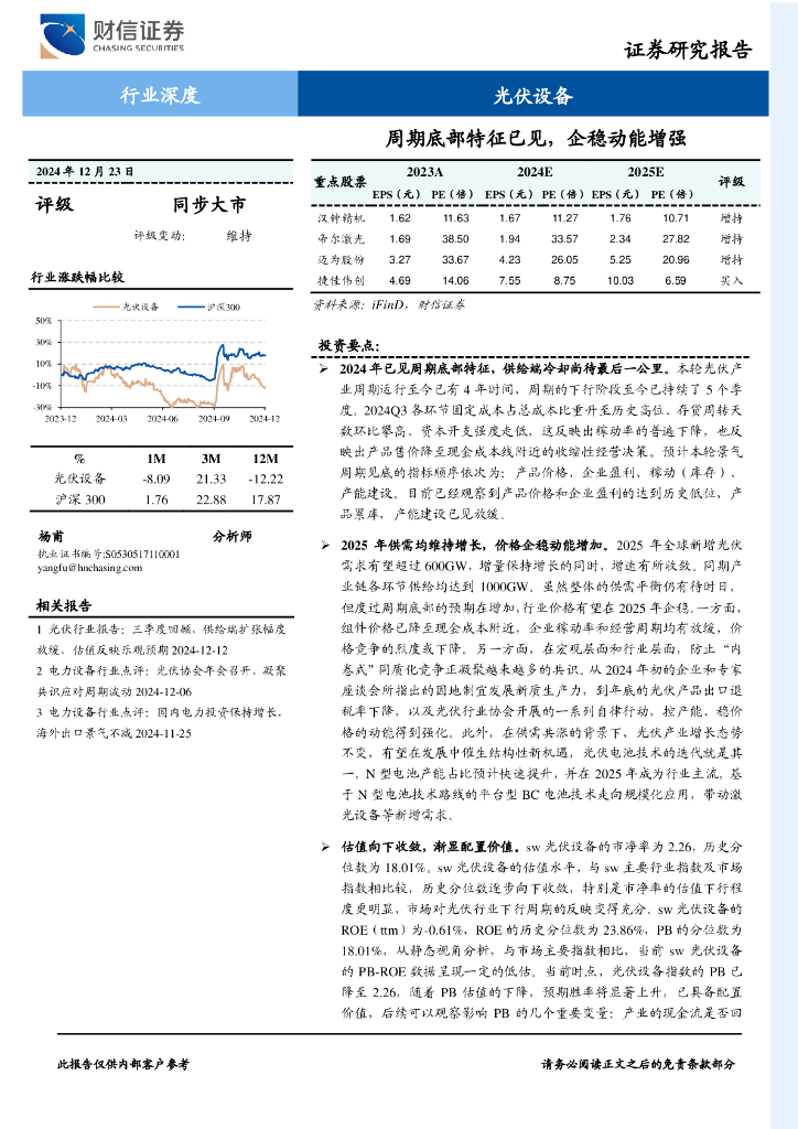 财信证券:光伏设备行业深度:周期底部特征已见,企稳动能增强.pdf