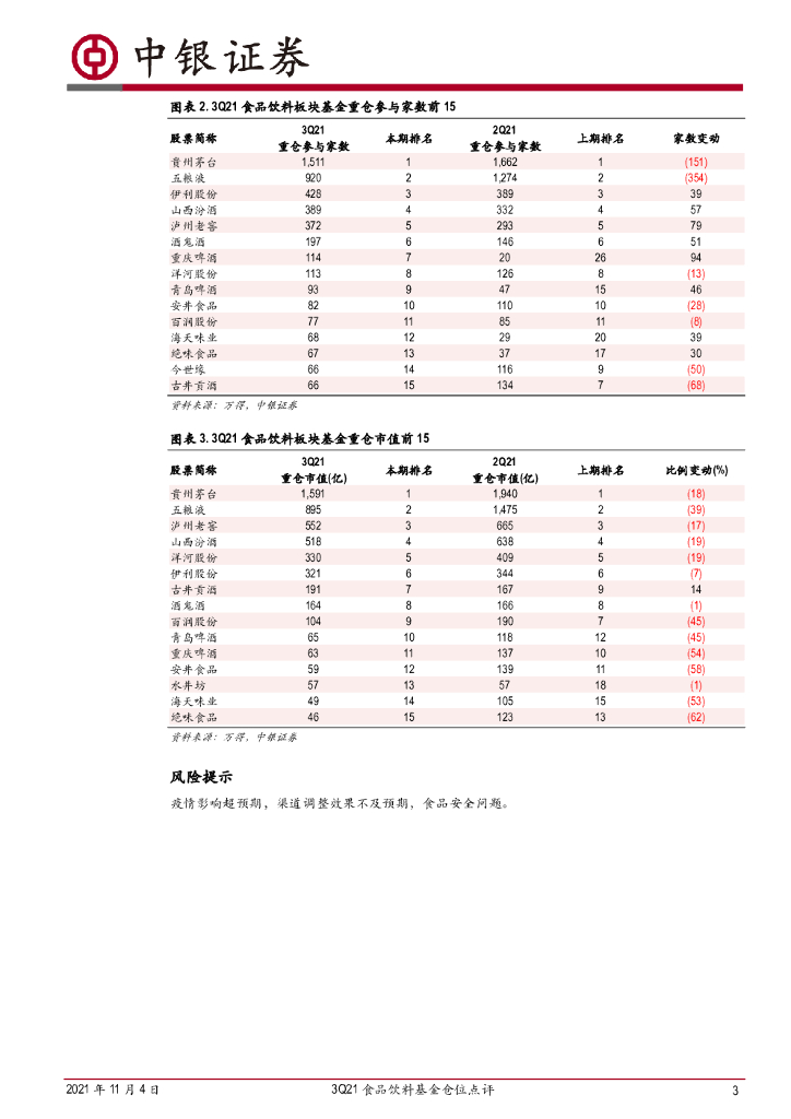 中银证券:3Q21食品饮料基金仓位点评:食品饮料仓位环比回落,白酒重仓比例下滑.pdf