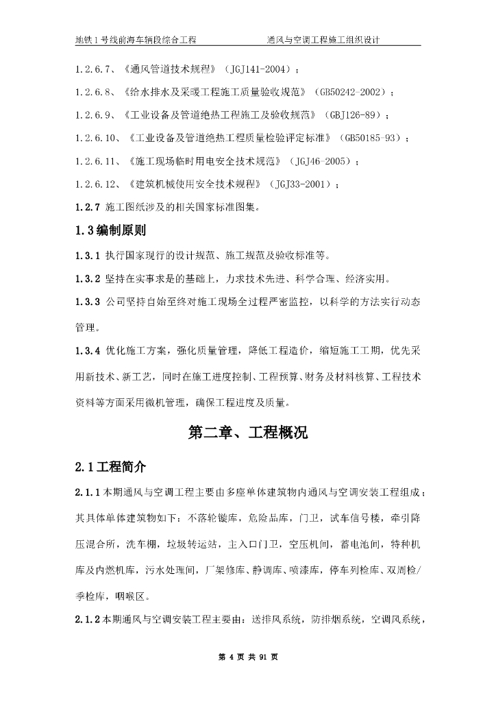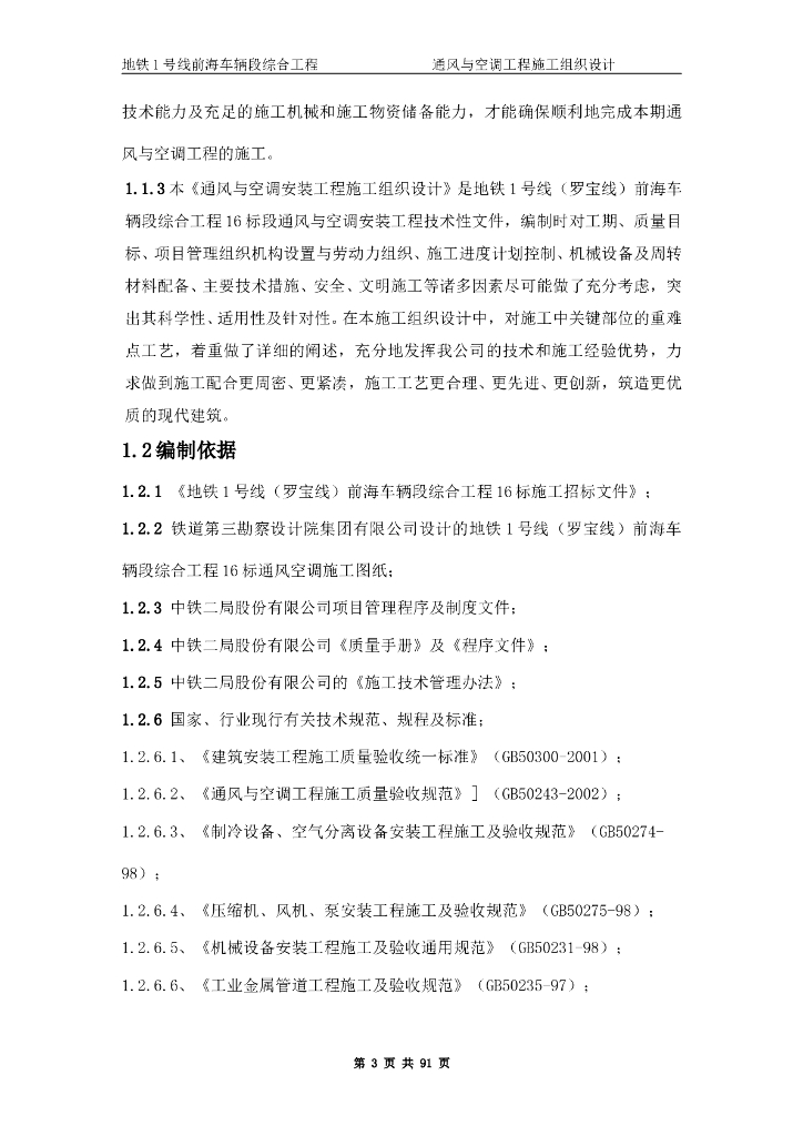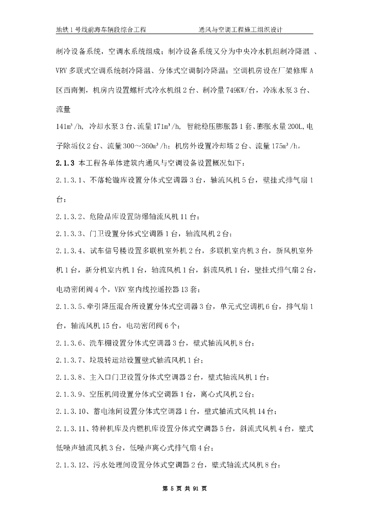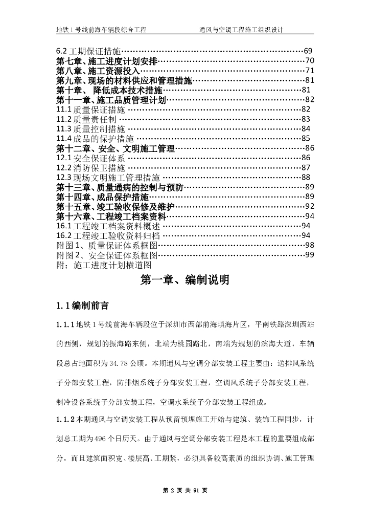 地铁1号线前海车辆段综合工程通风与空调工程施工组织设计.doc