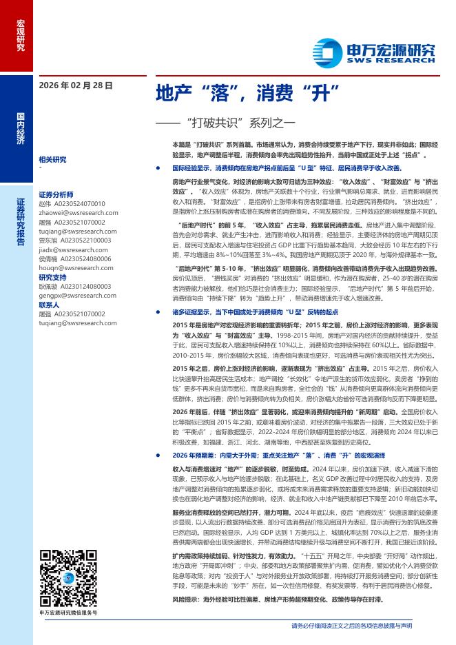 申万宏源证券:“打破共识”系列之一:地产“落”,消费“升”.pdf