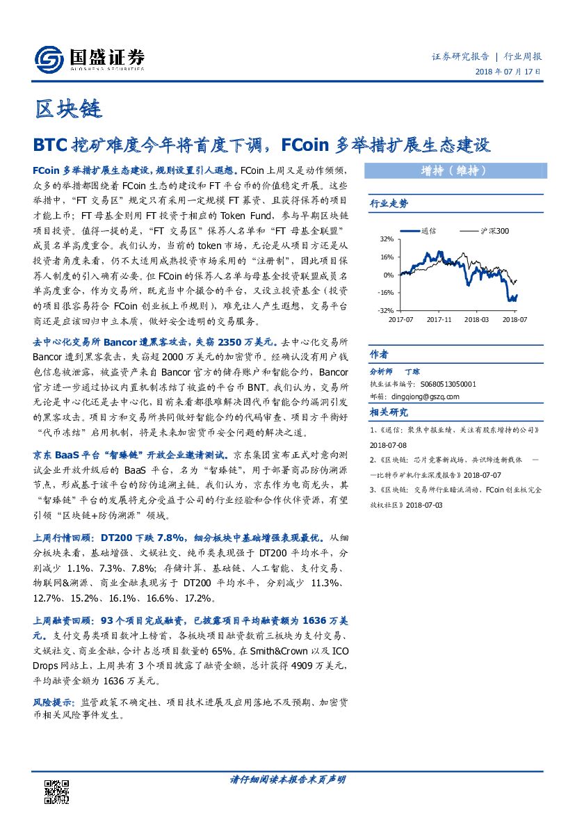国盛证券:通信行业周报:BTC挖矿难度今年将首度下调,FCoin多举措扩展生态建设.pdf