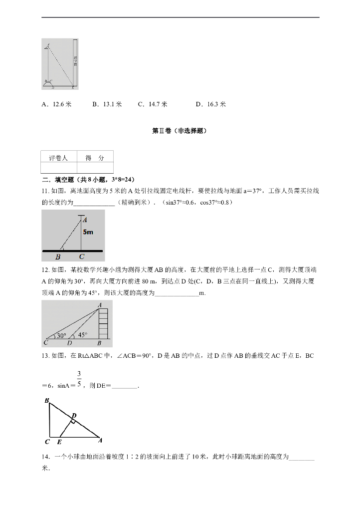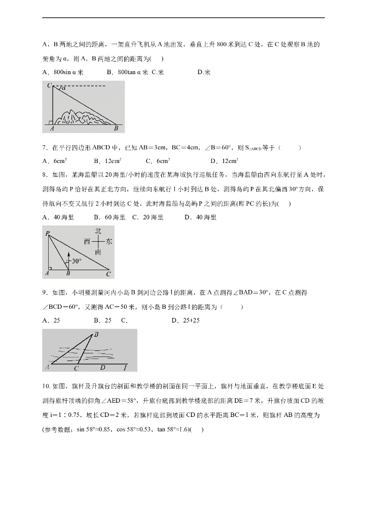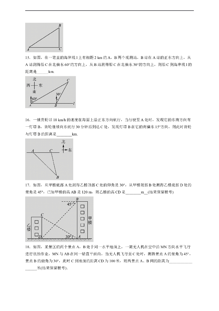 浙教版数学中考复习--九年级下册-第一章-解直角三角形--综合练习.doc