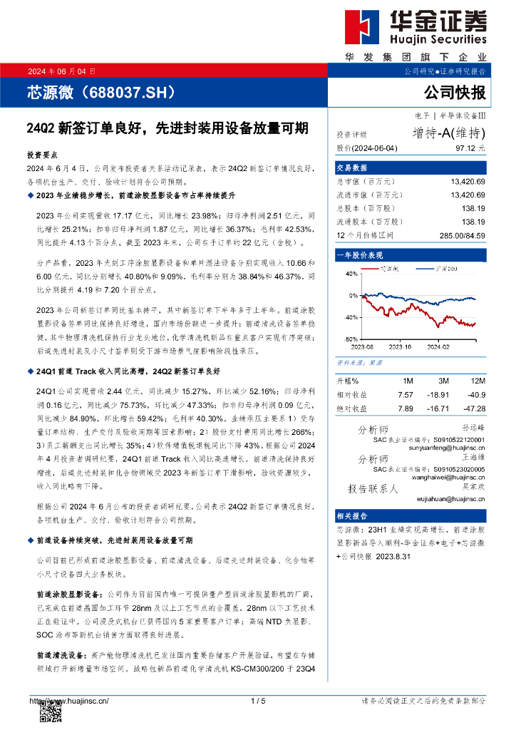 华金证券:芯源微(688037)-24Q2新签订单良好,先进封装用设备放量可期.pdf