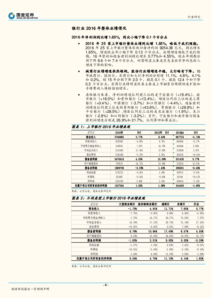 国金证券:银行业2017年日常报告:2016年报综述:营收增速回落明显;不良压力减轻.pdf