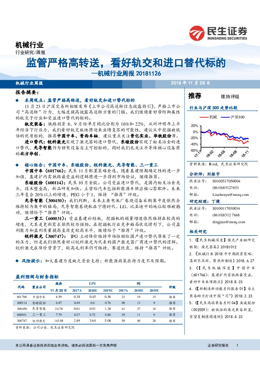民生证券:机械行业周报:监管严格高转送,看好轨交和进口替代标的.pdf