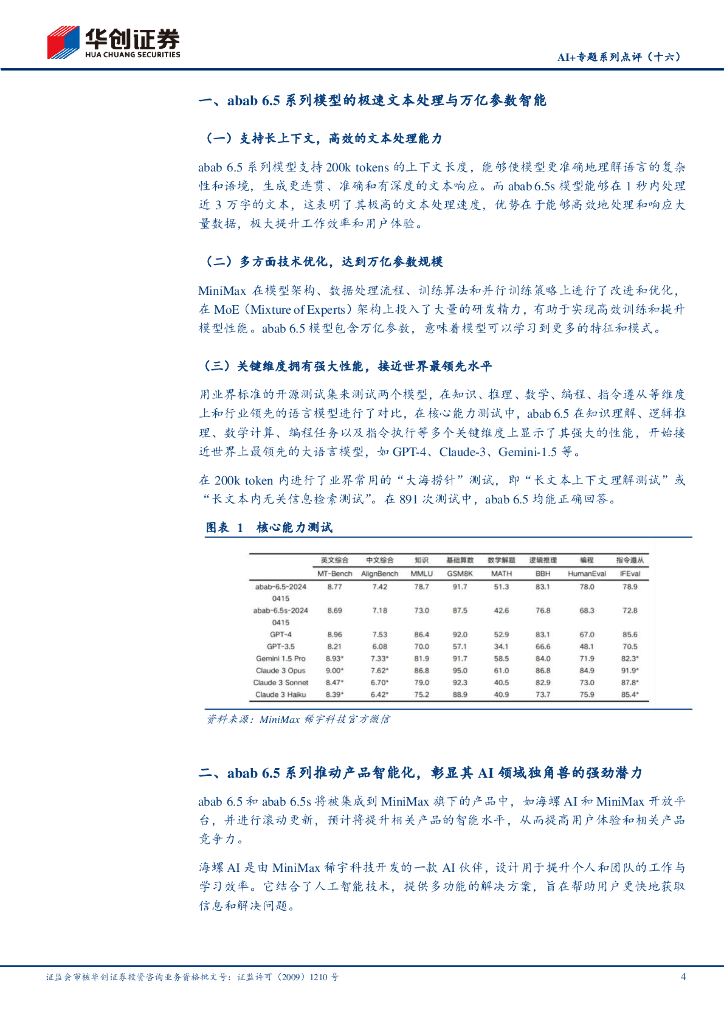 华创证券:AI+专题系列点评(十六):abab 6.5系列模型,高效文本处理与万亿参数,引领AI投资新趋势.pdf