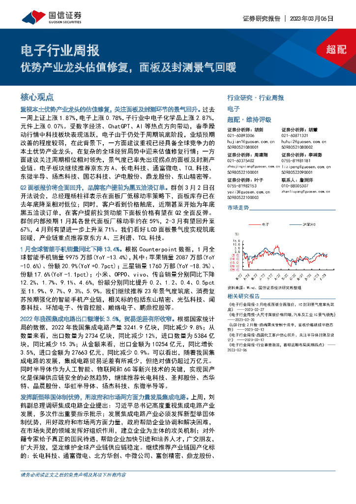 国信证券:电子行业周报:优势产业龙头估值修复,面板及封测景气回暖.pdf