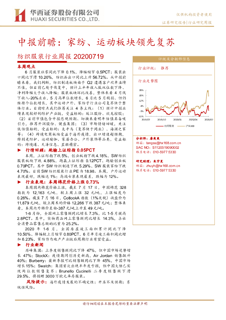 华西证券:纺织服装行业周报:中报前瞻:家纺、运动板块领先复苏.pdf