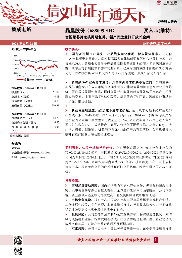 山西证券:晶晨股份(688099)-音视频芯片龙头周期复苏,新产品放量打开成长空间.pdf
