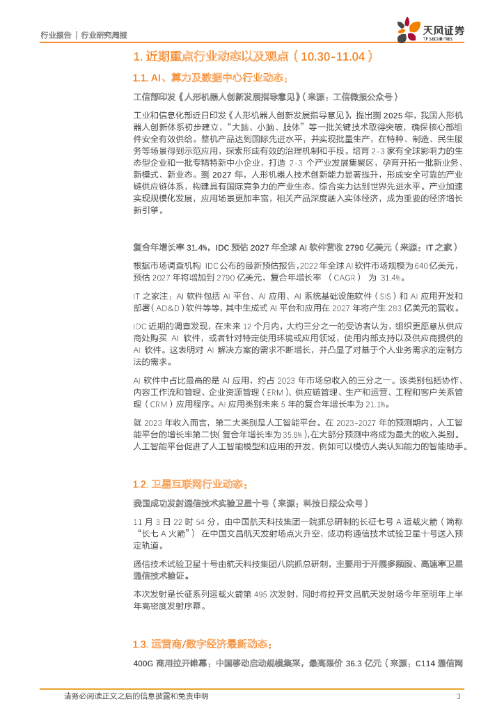 天风证券:通信行业研究周报:AI未来市场空间广阔,卫星通信技术发展持续推进.pdf