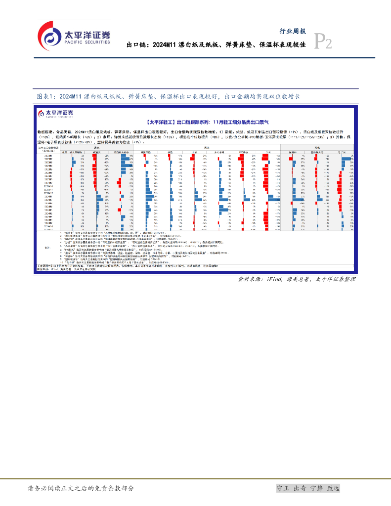 太平洋证券:轻工制造行业周报:出口链,2024M11漂白纸及纸板、弹簧床垫、保温杯表现较佳.pdf