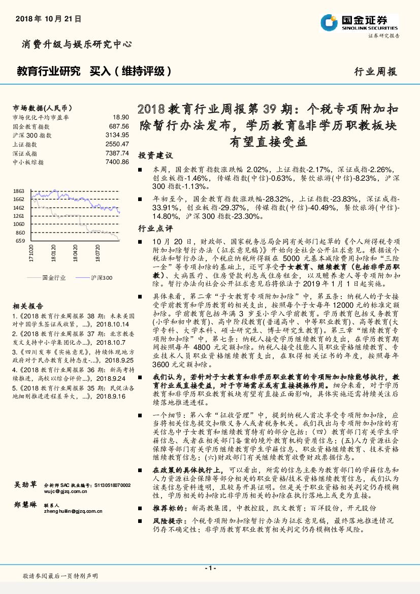 国金证券:2018教育行业周报第39期:个税专项附加扣除暂行办法发布,学历教育&非学历职教板块有望直接受益.pdf