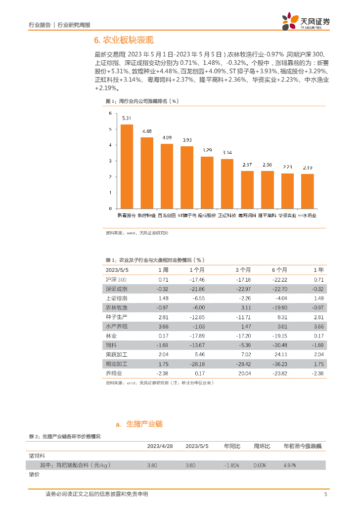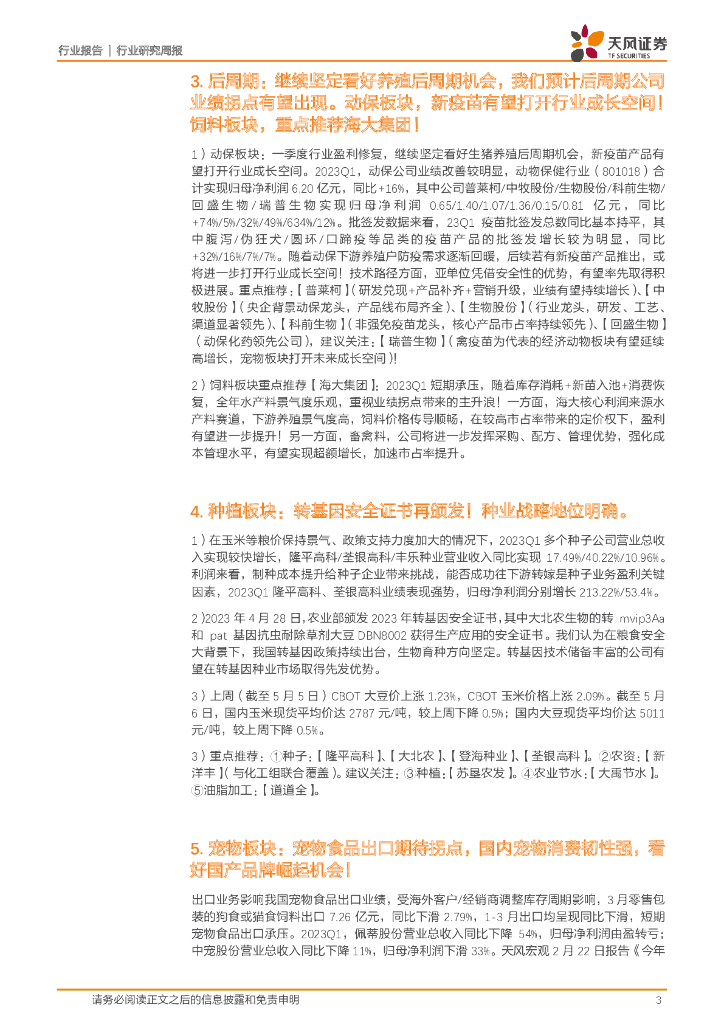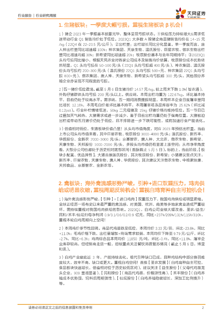 天风证券:农林牧渔行业研究周报:2023年第18周周报:一季报披露完毕,农业板块有何亮点?.pdf