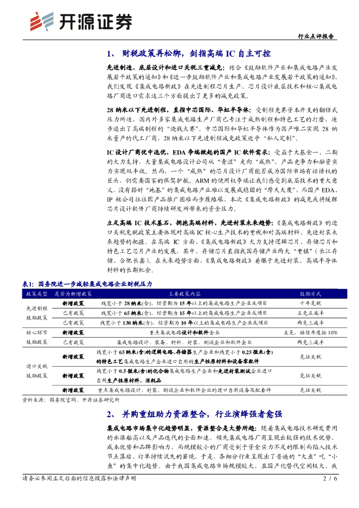 开源证券:电子行业点评报告:《集成电路新政》强势到来,高端IC自主可控或再度提速.pdf
