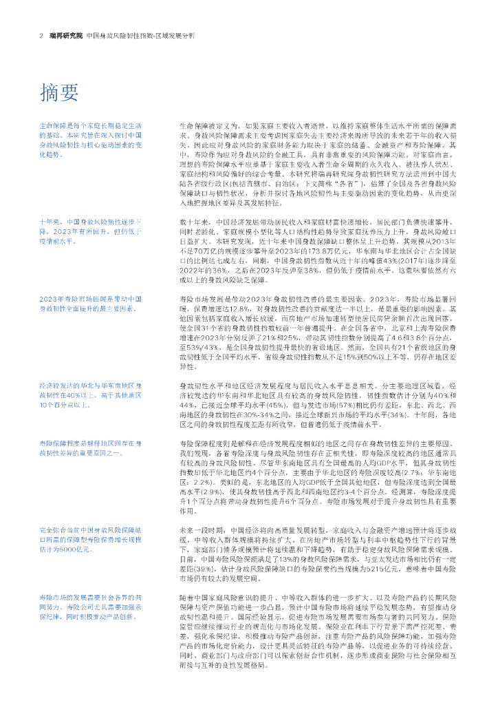 瑞再研究院:2024中国身故风险韧性指数-区域发展分析报告.pdf